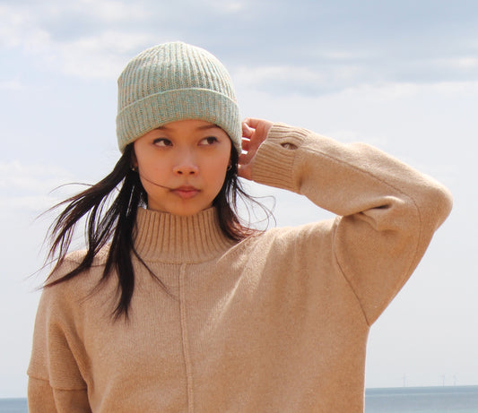 SEAMLESS MOCK RIBS CASHMERE BEANIE